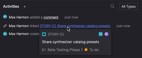 Building on last release’s automatic linking in descriptions, acceptance criteria, and other freeform text, Atono now also links story and bug IDs (like STORY-123