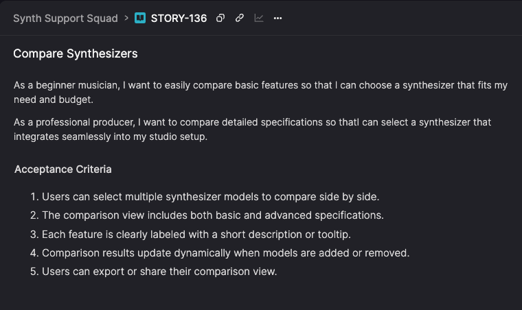 Features are often used by more than one type of user. You can now capture those different perspectives in a single story by including multiple user stories. This shared context gives teams a fuller picture of how a feature should work and helps guide better decisions.