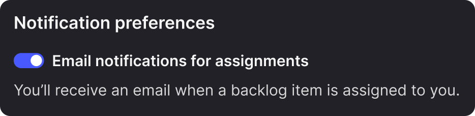 Stay on top of new work without constantly checking your backlog. Enable email notifications in your user profile to get notified when someone assigns work to you. You're only notified when someone else assigns work, not when you assign it to yourself, keeping notifications relevant and reducing noise.