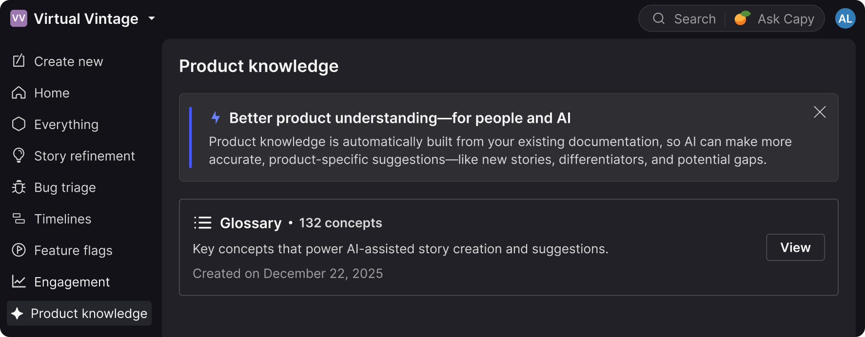 We're experimenting with a product knowledge feature that analyzes your help documentation and builds a shared vocabulary of key product concepts you can export and use as context for AI tools. Instead of guessing, AI tools can understand your product's language and how the pieces fit together.