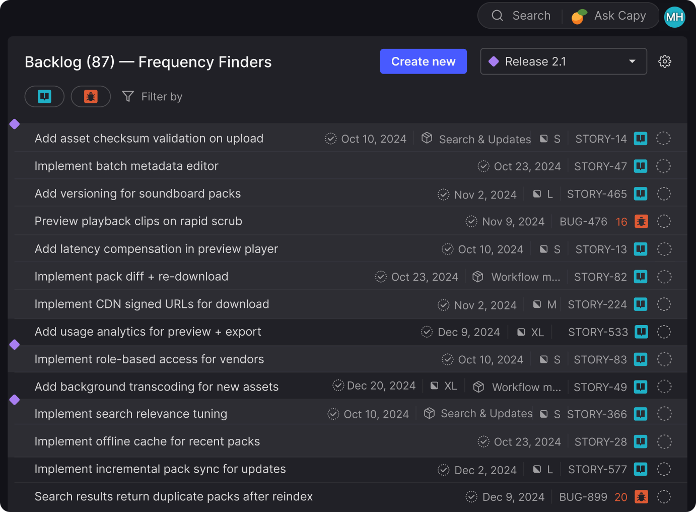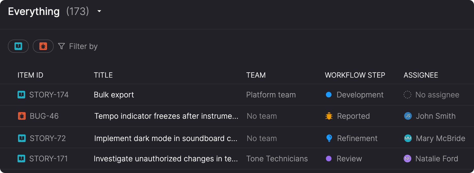 Know at a glance whether work is ready or still being refined. Story refinement and Bug triage now have distinct icons: a lightbulb for refinement, a bug for triage. This makes it clearer when an item is still being refined versus when it's in the regular workflow, helping you focus on work that's actually ready to be picked up.