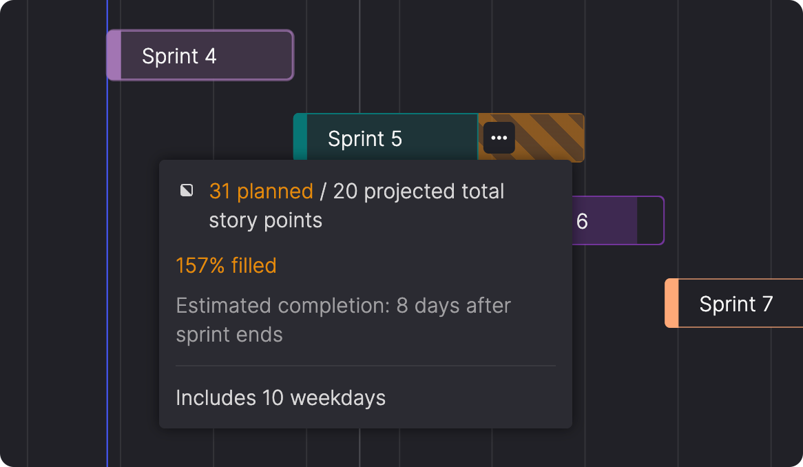 Instead of manually calculating how much work fits in each sprint, you can see at a glance whether your planned sprints are under capacity, properly loaded, or overcrowded. You discover problems with the plan while you're still building it, not after the sprint has started.